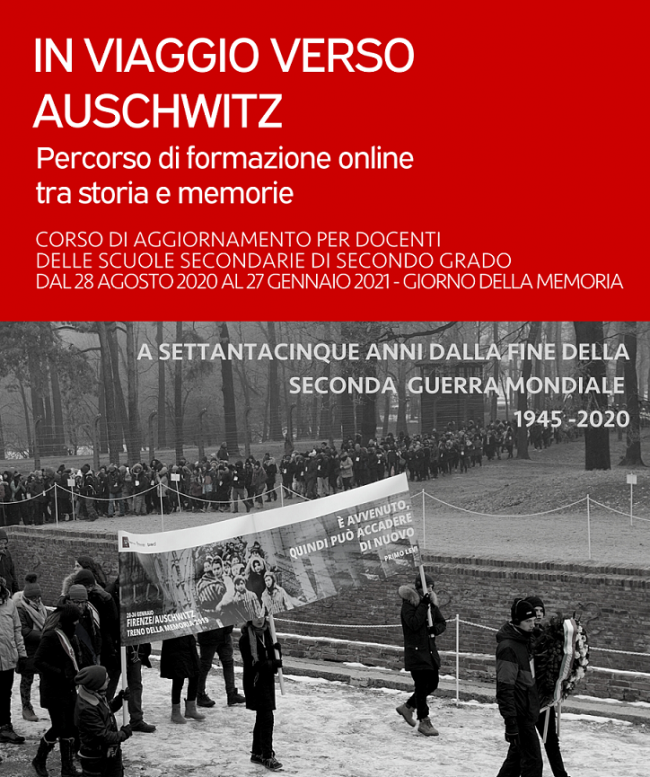 Venerdì 28 agosto 2020 inizierà il corso di aggiornamento per docenti delle scuole secondarie di secondo grado “In viaggio verso Auschwitz”, che si concluderà il 27 gennaio 2021, Giorno della memoria LE ISCRIZIONI AL CORSO SONO CHIUSE, MA È POSSIBILE PER TUTTI ASSISTERE ALLE DIRETTE STREAMING DEI VARI APPUNTAMENTI. MAGGIORI INFORMAZIONI SONO DISPONIBILI NELLA PAGINA…