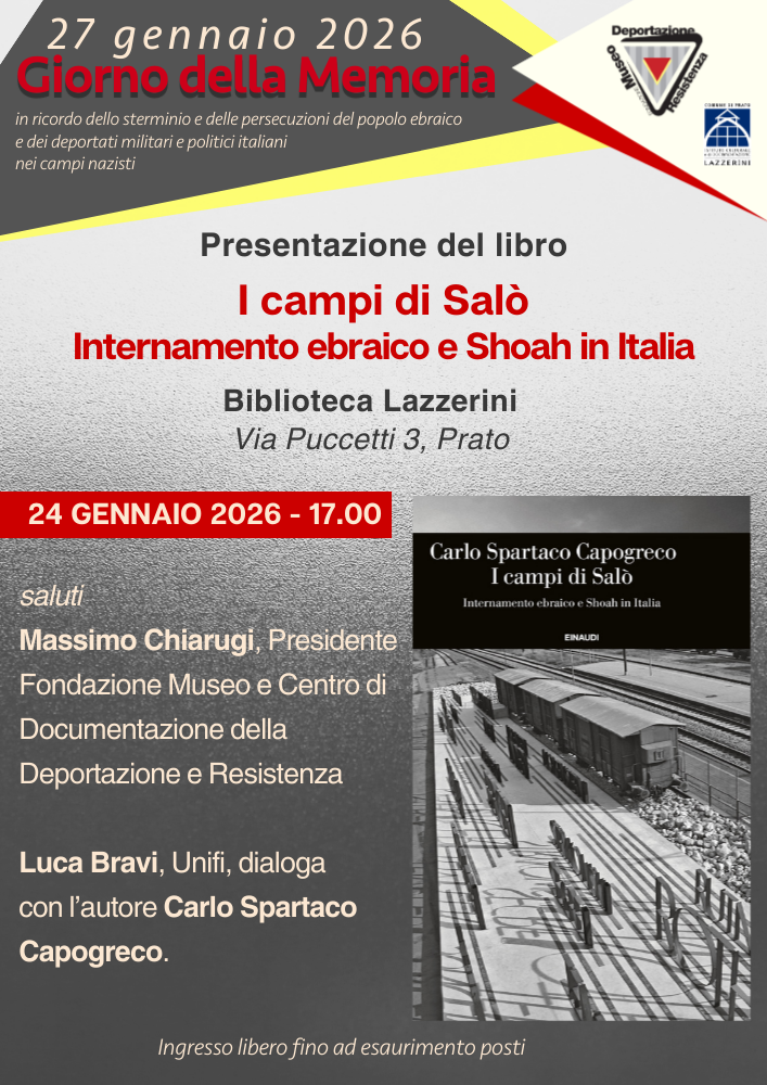 Saluti istituzionali Massimo Chiarugi, Presidente Fondazione Museo della Deportazione e Resistenza. Luca Bravi, Unifi, dialoga con l’autore Carlo Spartaco Capogreco.