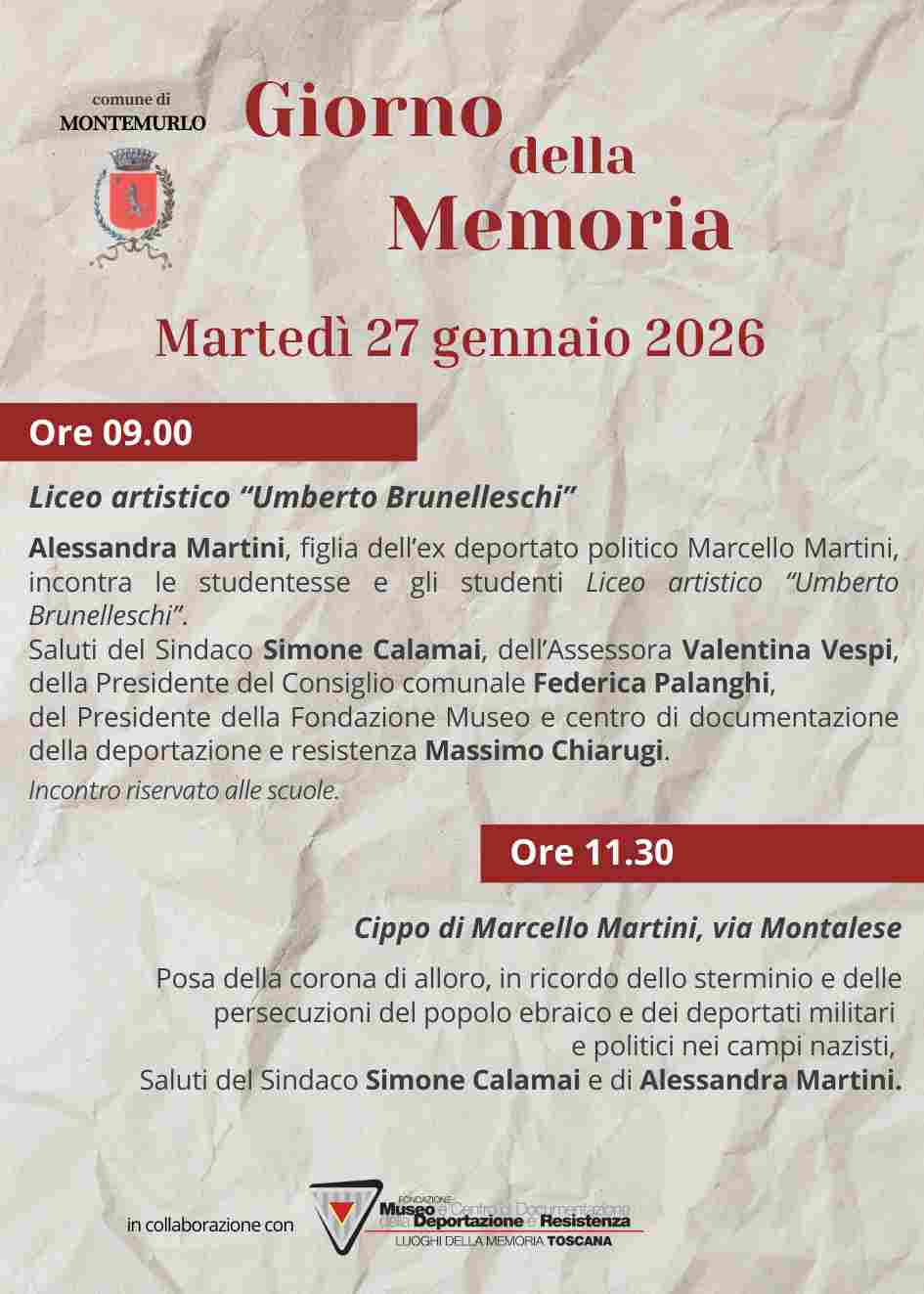 Per le visite è necessario prenotarsi entro il 26/01: al numero 0574 461655 – m.mosele@museodelladeportazione.it