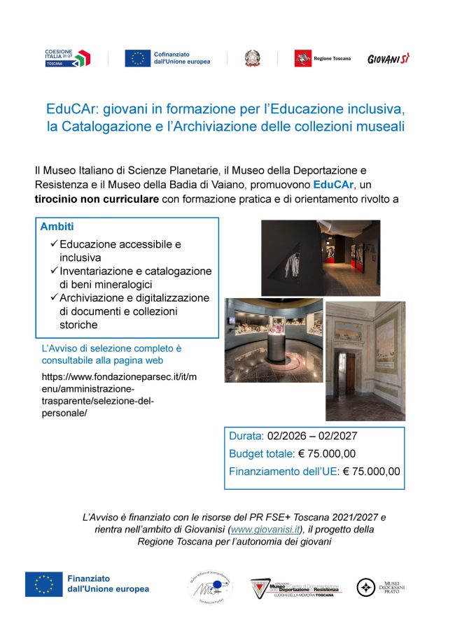 Attivo Bando di Concorso per Tirocinio Non Curriculare – Rete de Musei di Prato