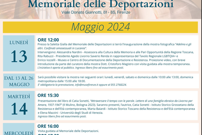 INIZIATIVE MAGGIO 2024 a FIRENZE Memoriale delle Deportazioni Il mese di Maggio sarà ricco di incontri e iniziative presso…